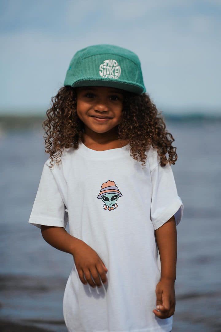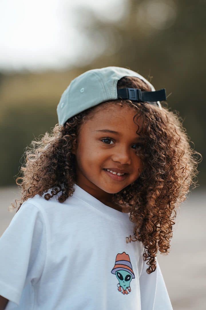 Notre charmante petite Jade qui porte fièrement la collection de Two Stoked Kids par Notice The Reckless
